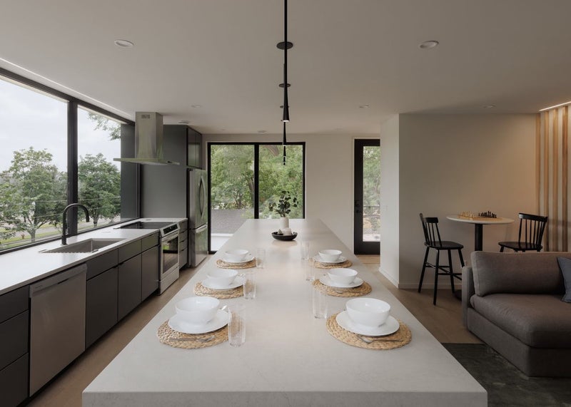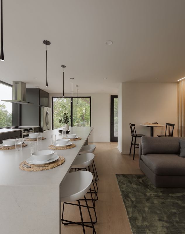 This partially furnished duplex features a large kitchen and living area with six private coliving suites and a focus on community living. Each suite consists of a bedroom, walk-in closet, and private bathroom. Each suite comes with a bedframe, dresser, nightstand, and flat screen tv. The common spaces are intentionally designed for six people to foster a sense of community. The couches, TV, and other large furniture are all provided as is a washer and dryer! Did we mention that this is a BRAND NEW construction? You'd be the first group to live here! There will also be TWO all-electric HourCar vehicles on-site available for carsharing (search HourCar for more information on carsharing). There is an $18 application fee that covers the credit and background check - no other move-in fees! All utilities are included, including wifi (heat, electric, a/c, water, sewer, garbage, recycling, wifi). Maximum income allowed is $55,620 per person (pre-tax).