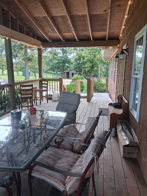 Located in a lovely park-like setting with relaxing views and a charming perennial garden for you to enjoy just 5 miles from Salem, Mo. Just far enough from town to enjoy quiet country living, with beautiful views and a storybook vista over which you can take in the magnificent sunsets from the large deck. All of this, and yet close enough to town that Walmart delivers.
