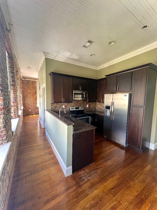 This apartment is FULL of character from the exposed brick to oversized, wraparound windows with extraordinary views of Downtown Columbus, it exemplifies everything you could want in an apartment. The unit has stainless steel kitchen appliances, original hardwood floors, and granite countertops. The unit also comes with a bonus storage unit that is approximately (ft X ft) for your extra belongings that may not fit in the unit. The building has a common areacoin washerdryer that has washers and dryers which service units. There is one reserved offstreet parking space for this unit. Tenant is responsible for all utilities (all electric, no gas) which are all serviced by Columbus Light & Water. This is a NO PET unit. Text Allie at for any questions or to set up an appointment.