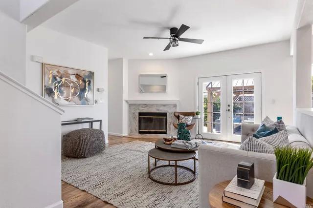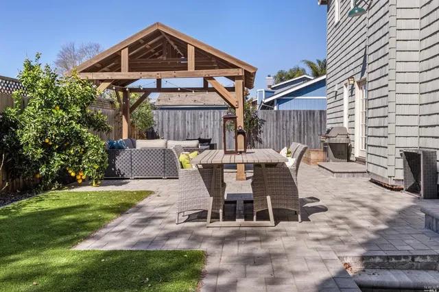 The home features a bright, updated kitchen, comfortable living areas, and a beautifully designed outdoor space with a covered patio, seating area, and TV—perfect for relaxing or entertaining.