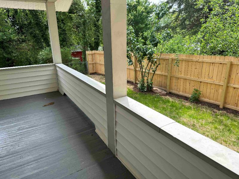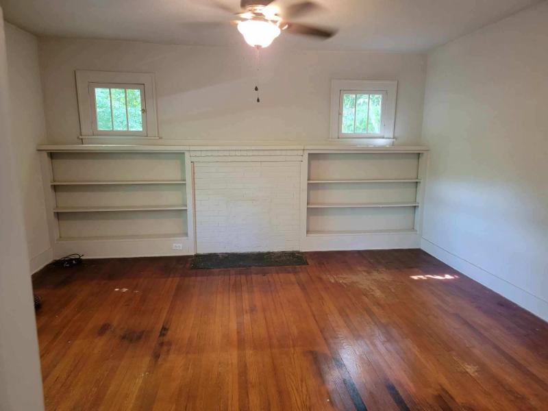 The house has a huge porch and usable yard space as well as a brand new privacy fence. Hardwood floors in living room and bedroom. Living room has wall length built in bookshelves. The bedroom is good size, as is the kitchendining area.