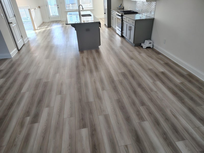 Main level is completely open-concept with large great room, specious kitchen with beautiful pendants and opulent refrigerator with water dispenser, large dining and sit out deck.