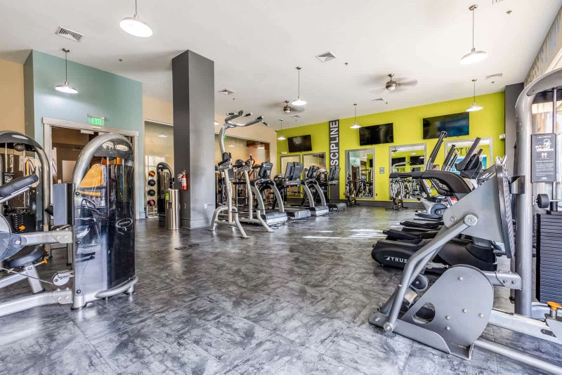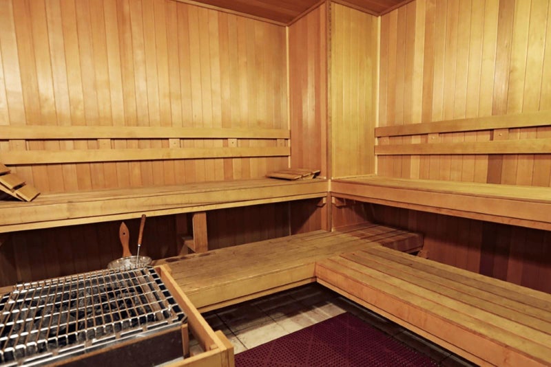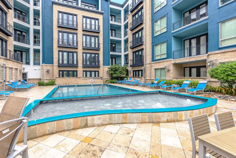 Amenities: parking garage, fitness center, dry sauna, hot tub, and outdoor pool and patio