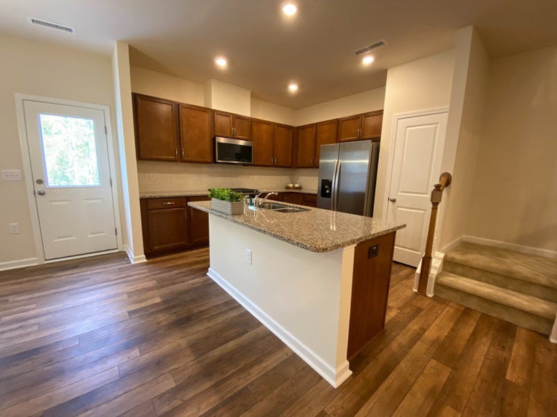 The kitchen includes new stainless steel appliances, a large island and plenty of cabinet storage.