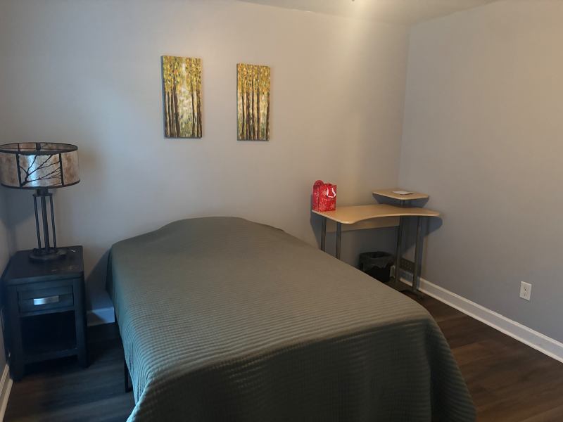 Included in rent: Furnished bedroom (bed, mattress, closets, desk, chair, nightstand + lamp) Shared bathroom Keyless entry to bedroom and Keyless entry at front door Small outdoor seating area All utilities (electric, water, trash, internet) Highspeed WiFi