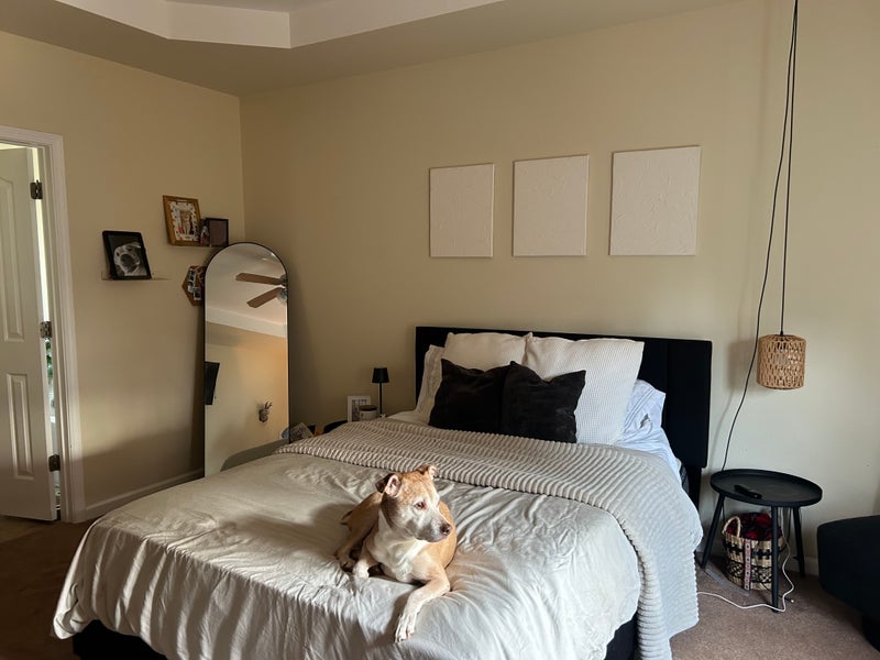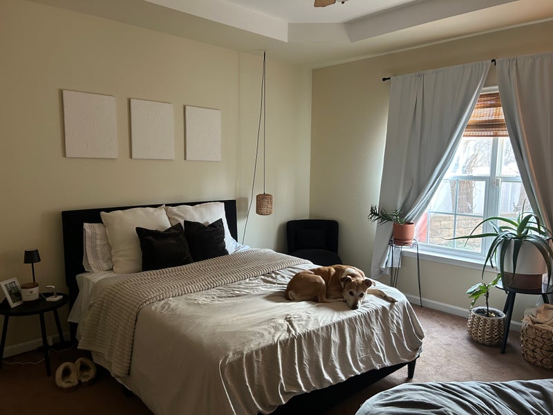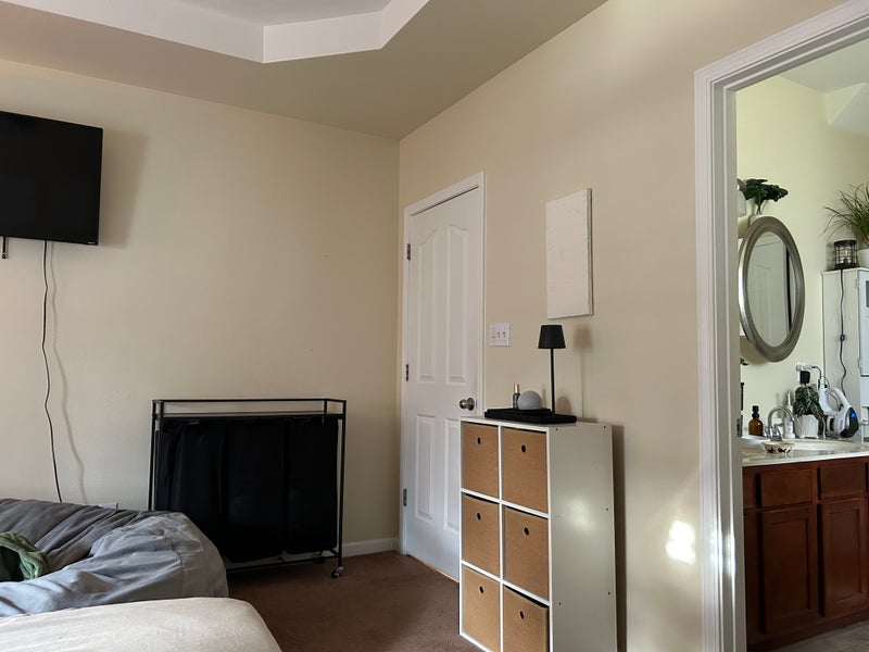 Double sink, walk in closet, jacuzzi, and shower, huge living room, kitchen, laundry room. Most kitchen items are included to share. Couch, TV, and washer/dryer have a separate fee (can be negotiated). $880 security deposit, then $820 for monthly rent. To lease at least 1yr at a time. Couple friendly. Or 2 besties friendly! We prefer no dogs or cats!