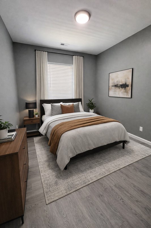 Staging of what the bedroom furnished will look like