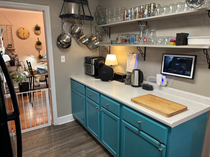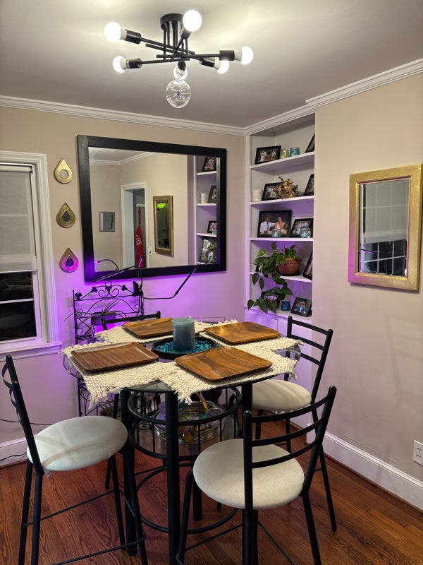 We live in a three bedroom two bathroom house with two separate living areas and a dining space as well as as an office space. The laundry is in the garage as it has turned into a workshop area. We have a large backyard that is fenced and has a gravel fire pit as well as a deck with a pergola. We have a large bloodhound that is extremely goofy and easygoing. The bathroom will only need to be shared when guests are visiting. We are a laidback couple. The room is currently furnished for my nineyearold niece but clearly that can be changed. Also something to know is we are fairly politically active.