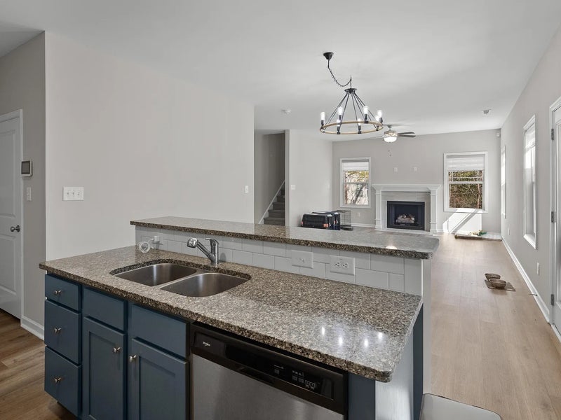 The kitchen features stainless steel appliances and flows easily into the main living space.