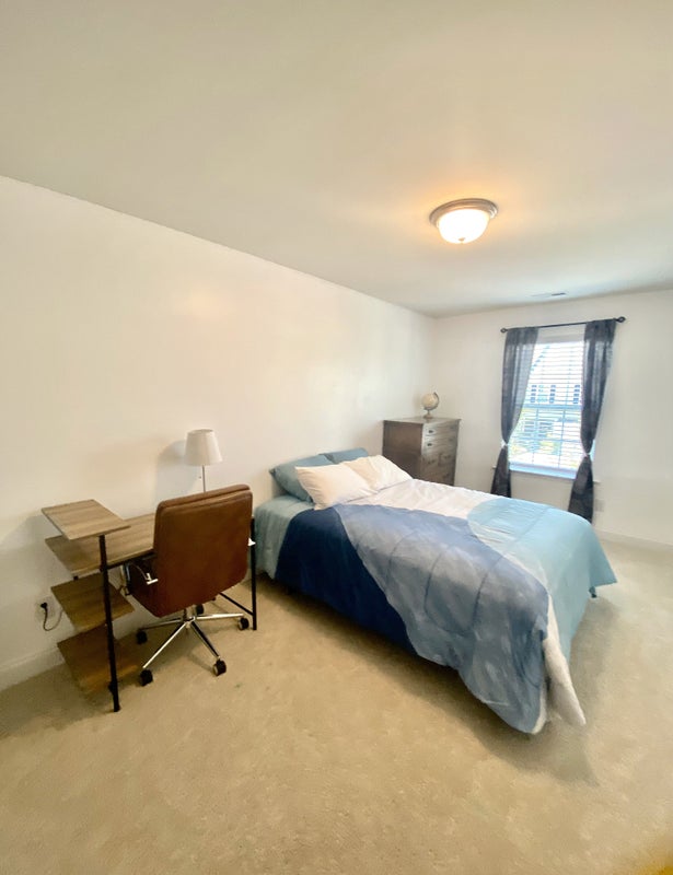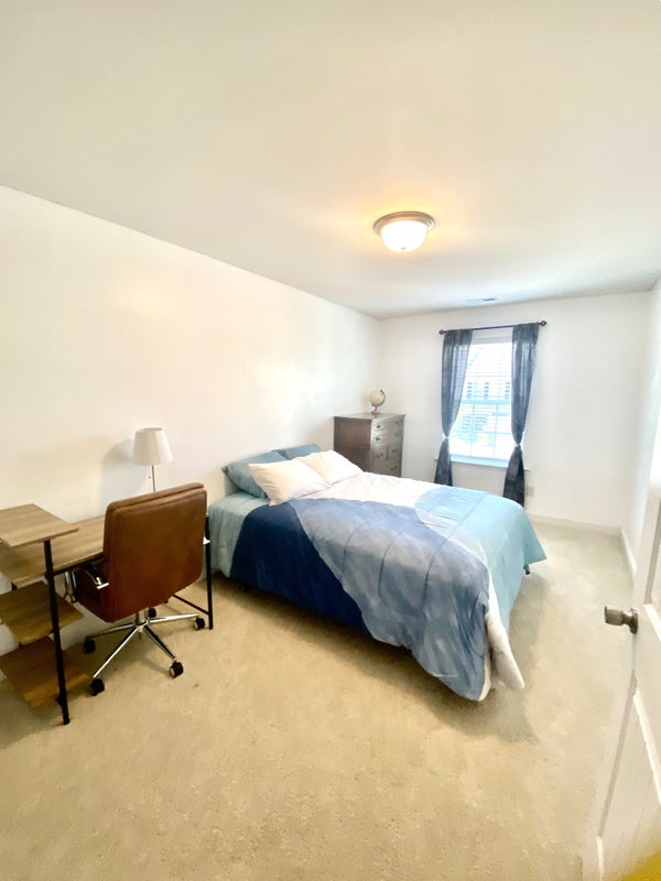 The room is on the second floor in a townhome, adjacent to the bathroom. The room has a queen size bed, desk, tall dresser and closet. Washer and dry are conveniently located on the second floor near the rooms. The home is in a newly built neighborhood, safe for walking to local restaurants, fitness, cafe and grocery. As far as roommates, there is one female and one male for which both are gone for about half of each week so if you're looking for a quiet place, this is it. This is a smoke free and pet free home. Shoes are kept at the door to help keep the home clean. Price includes all utilities, waste, and cleaning services.