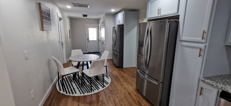 Newly renovated home ideal for working professionals. Price is for weekly room rent for one person. Your room has private full bath and is a fully furnished room with Queen bed, " RokuFire TV, dresser, nightstand, hardwood floors, keyless entry, and street parking in front. Shared spaces: Gourmet kitchen (french door fridges, microwaves), stylish living areas, onsite laundry, and Ring security. Includes: WiFi, electric, water, gas, biweekly cleaning and landscaping. Flexible Terms weekly lease option (minimum month stay) : $wk + $ movein + $ refundable security month lease option: $month+$ refundable security Annual lease option: $month +$ refundable security