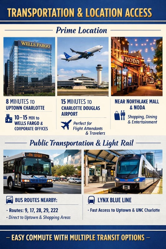 The home is conveniently located in East Charlotte just minutes from Uptown, The Airport, Shopping and Dinning. Making it ideal for travel nurses, Flight attendants and Corporate Travelers.