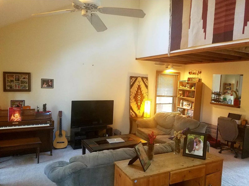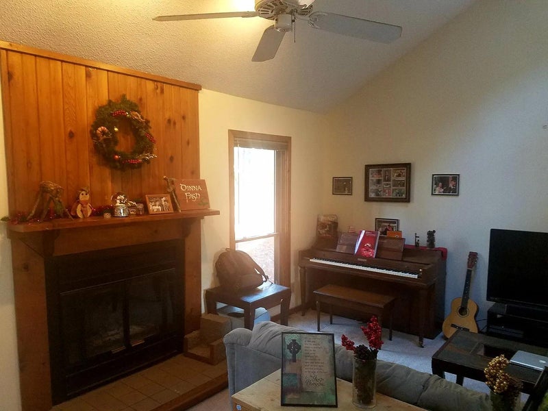 Cool, chill dead-end street. Deer families pass by a few times a week. Very little lawn maintenance. Fenced in yard, privacy fence. Newer kitchen-- nice updated cabinets. Fridge, dishwasher, microwave, stove, washer and dryer all included. Wood burning super-cool fireplace. TONS of storage space (closets span full length of wall in both bedrooms, vanities in bathrooms each have 6 large drawers, coat closet near front door, storage room off rear deck and a huge attic).