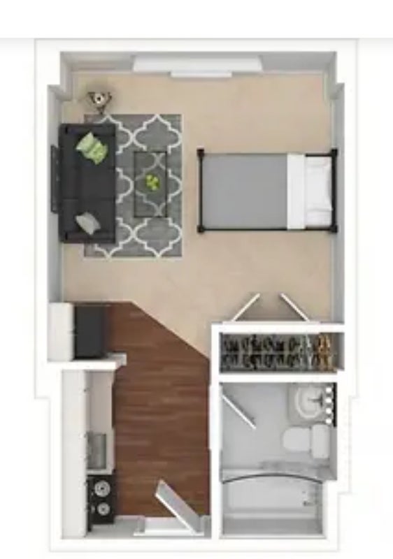 Studio apartment lease transfer available at Yugo Greenville Campus Towers. Ready for move-in now, with the lease running through July 2027.