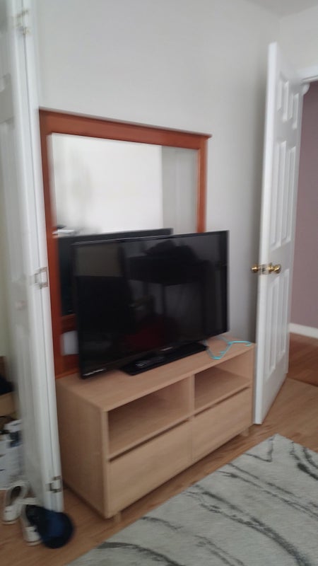 One room with furniture the other is empty with private bathroom. Share the living room with kitchen and sunroom with deck and backyard.