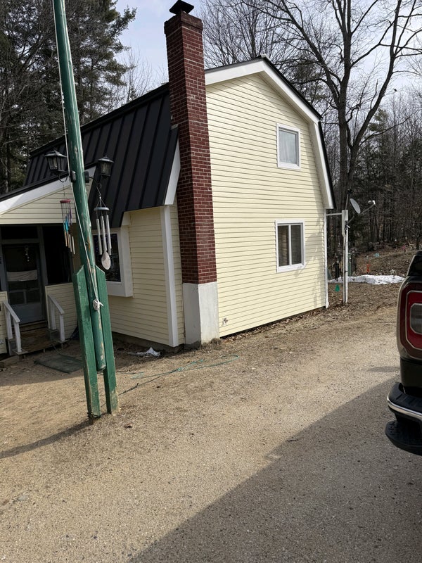 The house is a two bedroom and 2 bathroom house. It's a small house with a solid living space and a 12 acre field in the back.