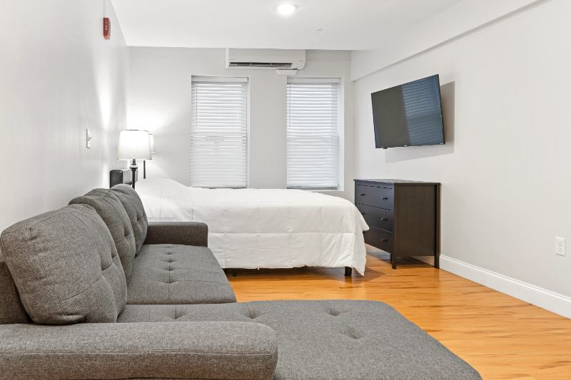 FURNISHED w ALL UTILITIES INCLUDED at THE BEDFORD BLOCK • Elm Street. One bedroom and studio lofts in the north end of downtown Manchester, STARTING AT $, MONTH, available for long and short term occupancy. All apartments INCLUDE ON SITE PARKING, HEATAC, HOT WATER, ELECTRICITY, WIFI, DIRECT TV and " TV. Beds are queensize with premium pillow top mattress, some apartments have pullout sofa bed for additional comfort. Furnishings may vary slightly from that shown.