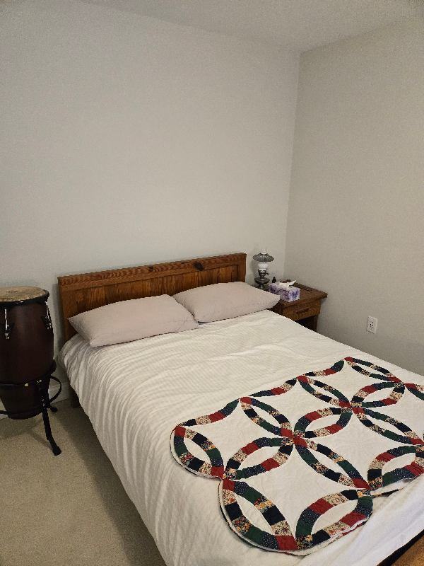 Single furnished bedroom (' x ' = square feet) with closet general use hallway bathroom for rent in a modern style well maintained farmhouse (.acre property).