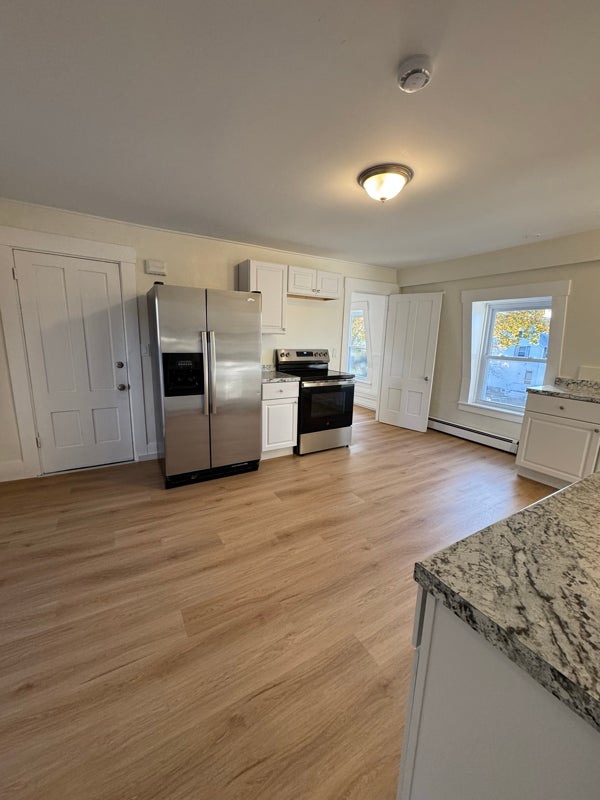 bedroom, bath apartment available on the second floor of a multifamily property. This unit’s renovations were just completed, which includes new flooring and paint, windows, cabinets, counters and bathroom vanity. The unit also has a small, private deck and is located not far from the Milford oval. $ per month, includes plowing, trash and water. Tenant is responsible for gas (heat) and electric. Heat is forced hot water baseboard heat. No AC tenant would be responsible for window unit if desired. Private parking is behind the building with spots. Laundry is not available in the building. Pets are considered for a fee. First month ($) and security deposit ($) are due upon signing a year lease.