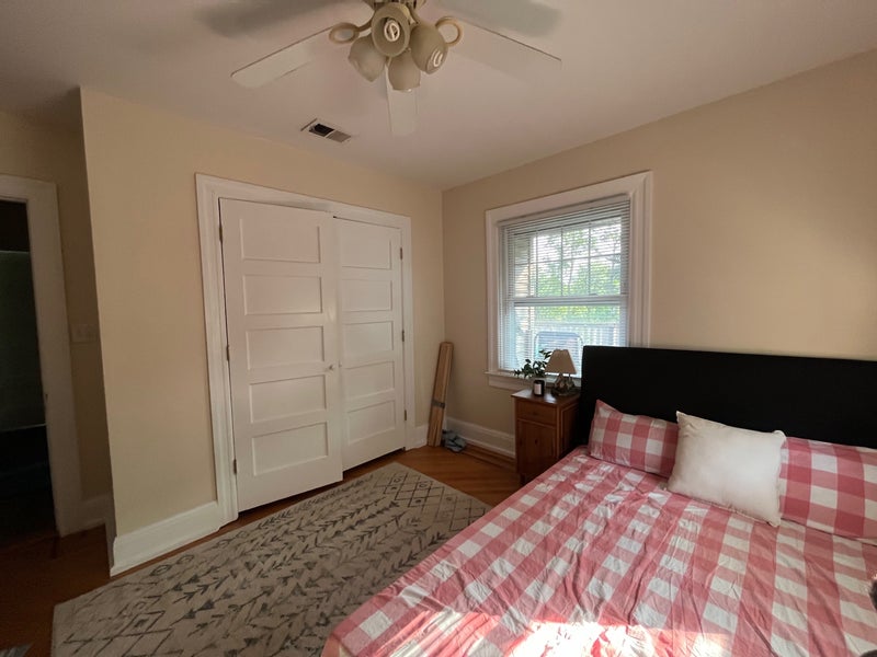 Hey! We’re two roommates who have been here for a a few years. We’re looking for someone to fill a private room with a shared bathroom. I have one cat, I’m figuring life out right now! So I’m home often, my roommate works at Starbucks, so you get free drinks! Utilities, parking, included. Laundry on site.