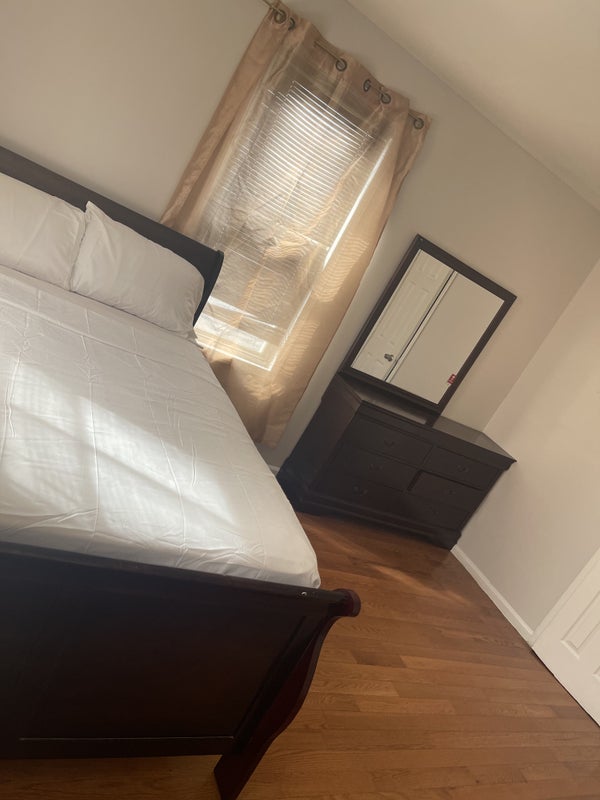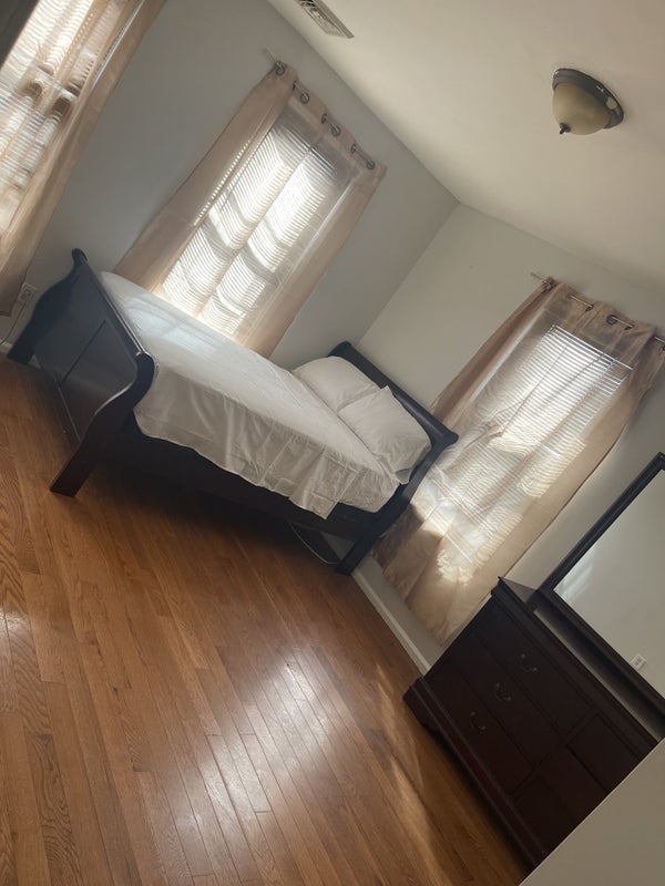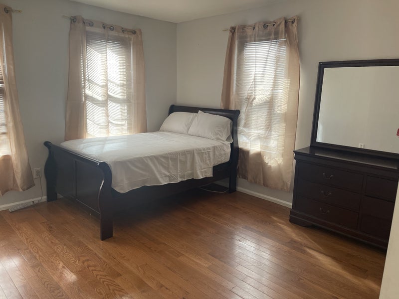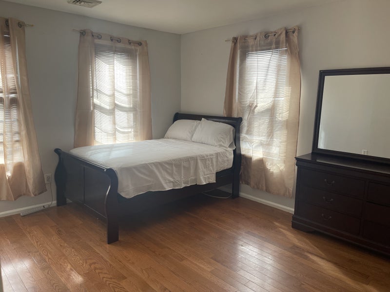 Large room with brand new bedroom set, very clean, shared bathroom and kitchen. Ask about private fridge. Couples welcome. Accessible to laundromat, church, plenty of stores and restaurants. Beautiful park nearby for bike riding or walking. Safe and Quiet family oriented neighborhood.