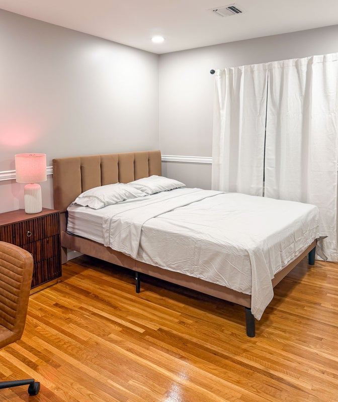 Furnished room available in a clean and well-kept 3BR / 2BA apartment in Ironbound, Newark. • Quiet, safe residential area (not a busy downtown block) • ~5 min drive / 15 min walk to PATH / Newark Penn Station (25–35 min to Manhattan) • Walkable to cafés, restaurants, and grocery stores The room: • Brand new queen bed & mattress • Smart lock on bedroom door • Shared bathroom with one respectful female tenant Details: • $1,000 rent , $70 utilities (WiFi, gas, electric) • 3-month minimum, flexible stay after • Move-in window: April 15 – May 1 Good fit: Working professional or grad student who values a clean, calm, and respectful living environment. Single occupancy only. If this sounds like a good fit, feel free to message me and tell me a bit about yourself and your timeline.