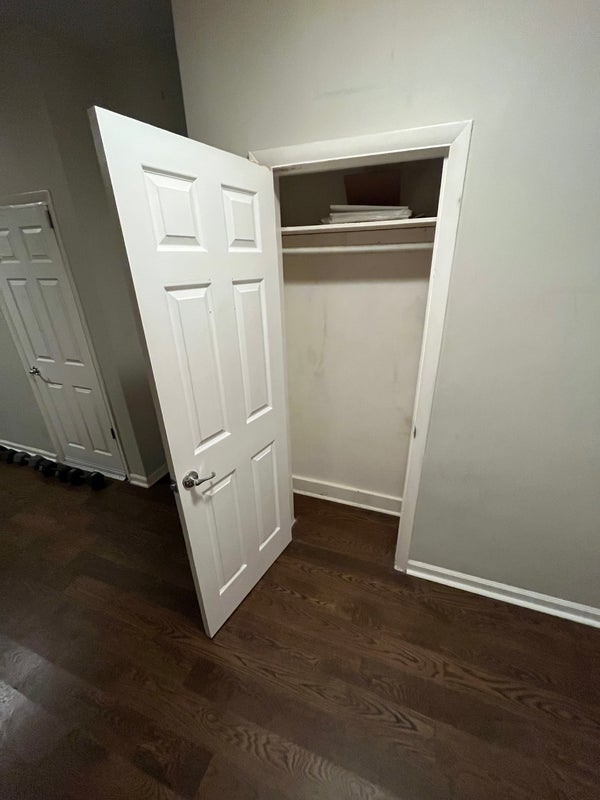 The available bedroom is a 200sqft master bedroom. It has two closets which provide ample amounts of space for clothing & storage. There is also a room in the center of the apartment to be used as a shared pantry & storage area.