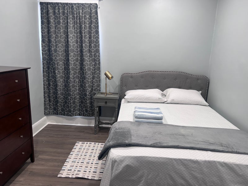 Newly renovated apartment, light, bright modern. It’s a no smoking space that’s quiet spans two floors, with two kitchens and two bathrooms. Central air ,Wi-Fi and utilities included. Close the shopping and public transportation.