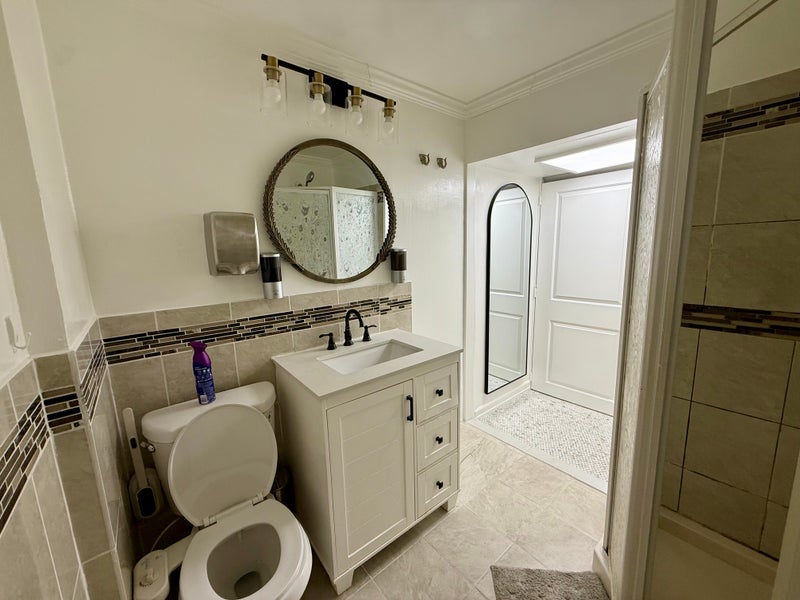 The first floor toilet /shower needs to be shared by all the three tenants i. e by both the tenants of the second floor and the basement tenant. There is a separate area for dressing up and has a full length mirror.