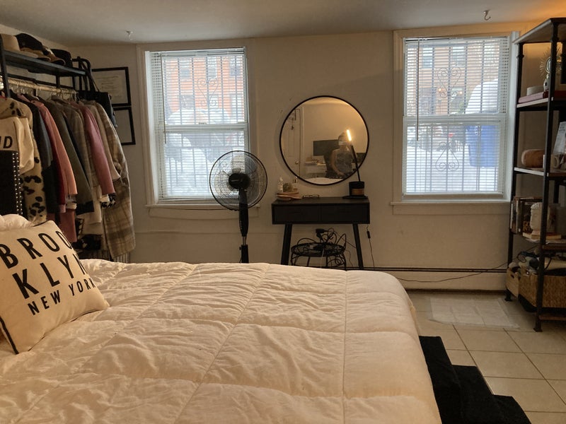 Room is huge (can fit queen/king bed), multiple dressers, desk, etc. and has a double closet. Located on the lower level so there is a lot of privacy. Good natural sunlight. Current tenant is looking to sell her bed frame & headboard, dresser, and vanity if you need furniture!
