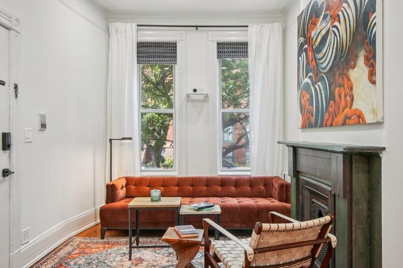 Ingenious, fashionable, and effortlessly cozy. This lovely condo on the Parlour Floor combines contemporary improvements with vintage details. It has the building's tallest vaulted ceilings, floortoceiling windows, a restored blue stone fireplace mantel, and is only four short steps from the street. A bespoke floortoceiling closet, three ceiling fans, and smart home technology such as the Google Nest Protect (smoke and CO detector), Google Nest Thermostat (programmable WiFi), and SMONET WiFi Fingerprint Door Lock (app, Alexa, auto lock) will make you feel comfortable. The clean building has a shared backyard, laundry facilities, a fivetier storage shelf, and a new roof ().