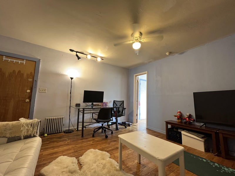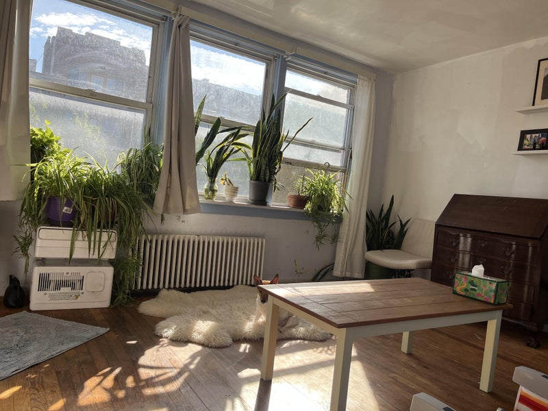 It is the front suite of a spacious apartment in Hoboken, the bus to port authority is just around the corner, and 13 minutes’ walk to the Path station. And it is only steps away from Stevens, The small room(7X11) can be used as an office or closet, or a small bedroom. The big room (11X15) is large enough for a queen bed and a sofa plus sitting area. The small room has one large window, and the big room has three large windows. One can only enter the small room via the large room. You can rent the whole front suite for $1480. There is no in-unit laundry, but there is a drop off laundromat just around the corner, and a self help laundromat 5 mins' walk away. And the bathroom is shared. There are a lovely Jack Russel terrier and two cats in the apartment. Non-smoker please. And no late night guests and parties. The other occupants works from home. She is a vegetarian. She prefers to keep the apartment quiet, tidy and clean.