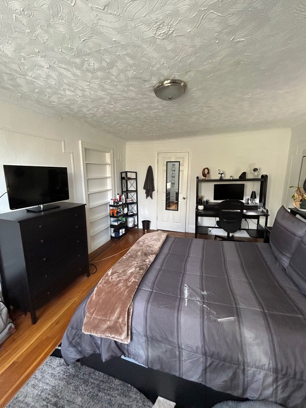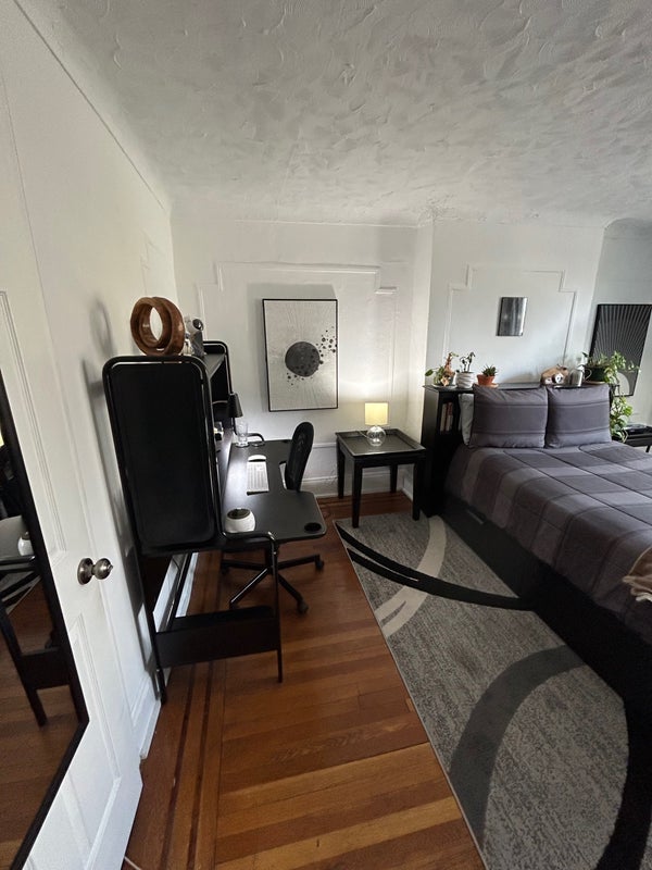 The room is very large and includes an attached side room that can be used as a home office, walk-in closet, or extra storage space. It will be left furnished with a full-sized bed and mattress, dresser, and side tables. I can also leave clean sheets and pillows if wanted.