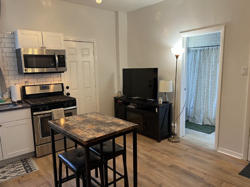 NO FEE, Free Laundry in the building with a Deck in the back. A big studio (divided like a 1-bedroom) in the hilltop/Island location, which is 0.7 miles to JSQ path, and also walking distance to downtown JC. Posting rent includes water/sewage/gas/heat/hot water. The unit has brand new windows, kitchen cabinet, granite countertop with SS appliances. Newly gutted out and renovated bathroom. Tenant pays for electricity and internet only. Max for 2 people.
