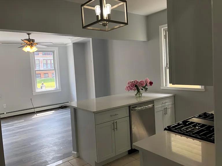 The Unit is a second floor walk up, with a washer and dryer on the premises, a semi- private balcony, 12ft ceiling, with an engaging open floor plan that offers lots of natural light. A newly renovated kitchen and bathroom blends seamlessly into the apartment. It’s a dream come true, with the Path train taking you into the city in 15 minutes or less. The mall is one stop away using the Path or a 9 minute drive. 20 minute drive to Newark airport or you can make your way with the Path train and a shuttle in 45 minutes or less. The unit also has a shared dishwasher and a fridge of your own.