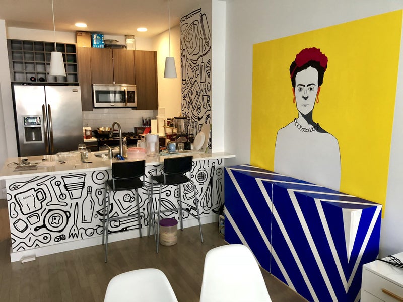 Chic 660sqft apartment with private 200~sqft terrace of ex-artist with custom hand made artworks on walls (can be removed) in the of the nicest area of Jersey City , prime location in paulaus hook, barely 10 mins walk to Grove station.
