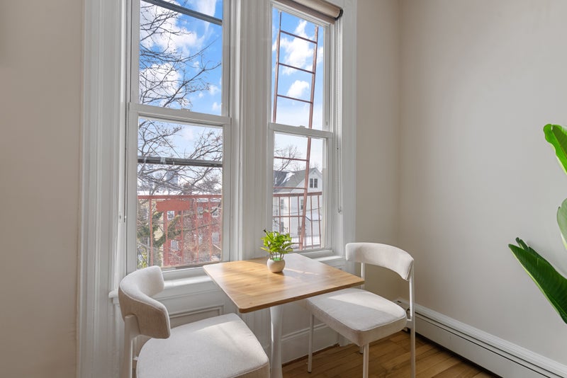 Key features: 10' high ceilings Historic architectural moldings & exposed brick Top floor unit - no noisy upstairs neighbors & tons of natural light on every side of the apartment Sturdy bed frames with in-built outlets/USB ports & 3" Memory Gel Foam Toppers Washer/Dryer on premises Fully stocked Kitchen with pots/pans/utensils, etc. Individual AC/Heat Control Privacy Door Locks w/ fingerprint & access code on each bedroom door