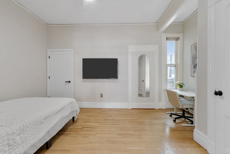 Room #3: $1850 Queen-Size Bed Private Entrance Private Full Bath - fully renovated Large walk-in closet Kitchenette with microwave, mini-fridge, Keurig, and tea kettle Luxury Hearth Cabinet Ventless Fireplace Custom built-ins Sit-stand desk w/ over-sized desk chair 55" LG Smart TV Shared access to kitchen & living room
