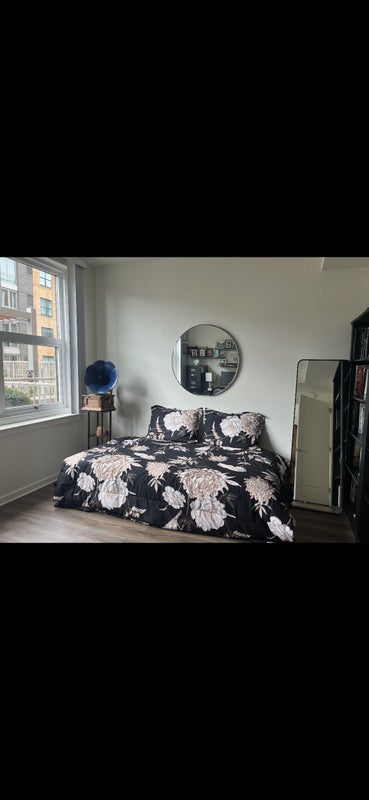 Available March 1. Furnished apartment with bed, dresser , desk and with large private bath. Use of washer and dryer in apt. The apartment has a lovely living room and kitchen with outside patio with pool and barbecue. The building has a gym. It is for one person. No smoking, pets or parties. It is next door to Whole Foods and a 5 minute walk to bus and ferry. Parking on street and paid parking. Bus is a 10 minute ride to NYC. Light rail is also close. Across from Whole Foods. It’s just me in apartment. I work out of my apartment. Photos available upon request. Beautiful and modern apartment.