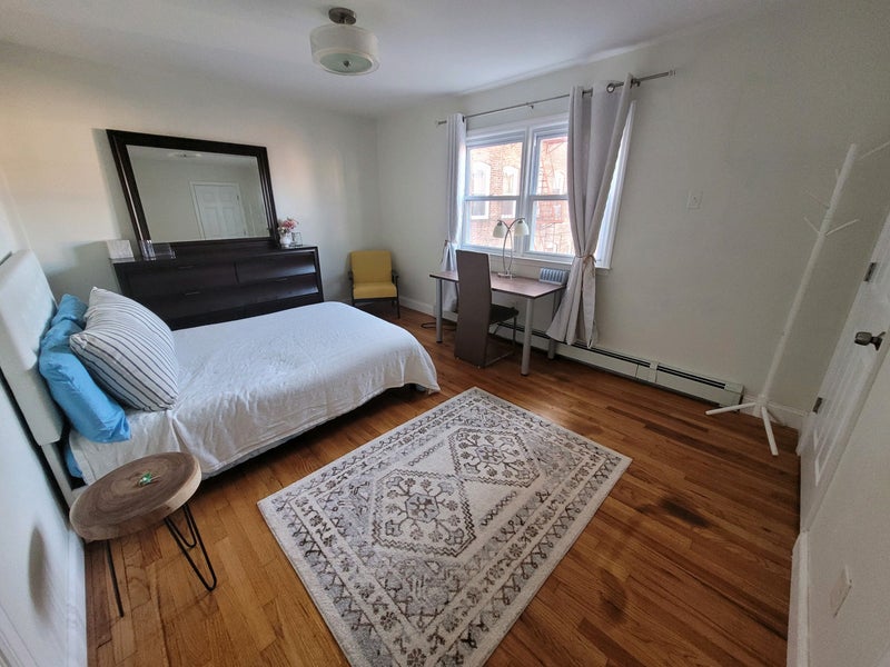 Looking for a female roommate in a newly renovated duplex apartment on Boulevard East with stunning NYC skylines views with large balcony. Laundry in house. Preferably working professional female. The Room comes with a chest of drawers , mirror and desk + chairs, full sized bed. Looking for a respectful and clean female roommate to share my nice home with in harmony. There is a bus stop in front of the house taking you to NYC/ Times Square within 15 minutes, runs every 5 minutes, even on weekends and nights!