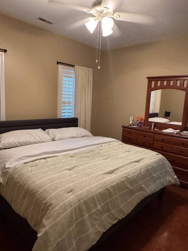 The bedroom is furnished with a comfortable king-size mattress, nightstand, dresser, and ample closet space. I can remove any unnecessary furniture if you prefer to bring your own. Please send your phone number for a quick response.