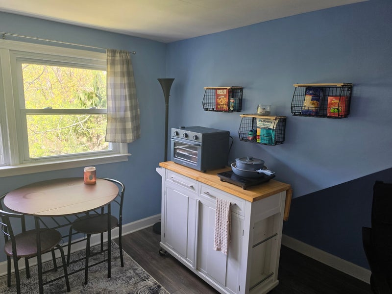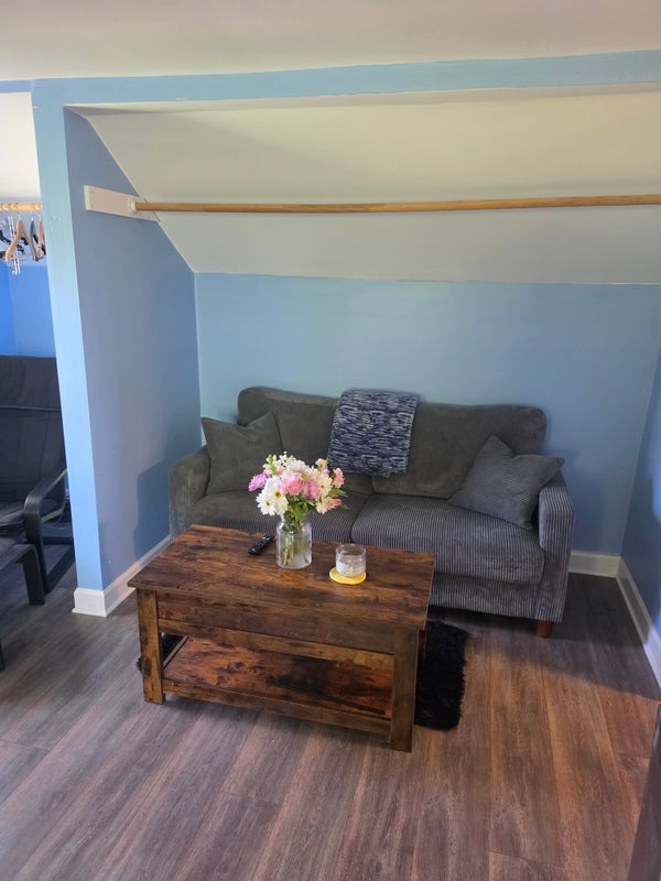 A spacious and comfortable private upstairs suite designed with travel nurses and working professionals n mind. This fully furnished space offers a large bedroom, a separate officeliving area with kitchenette and a newly renovated private full bathroom giving you the feel of your own apartment within a home.