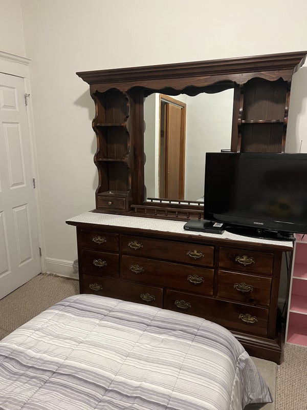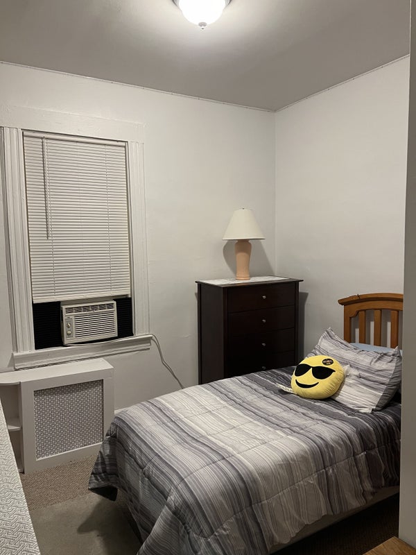 The room is in a 3 bedroom apartment on the second floor of a 2 family house. It’s a smaller room, has a window AC and a decent size closet. The room is furnished with a twin bed, a dresser w/mirror/ hutch, a chest and a tv. It’s a shared bathroom and kitchen/ kitchen area. No living room. Street parking only but I always find something close. Rent includes utilities (heat, hot water, gas, electric and wifi). No splitting bills blah blah blah. Another plus is that there’s laundry in the basement.