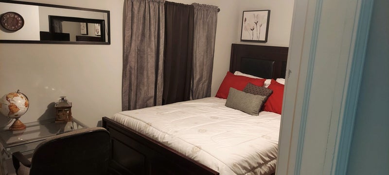 Fully furnished room, bed, dresser, tv, microwave, fridge ,electric stove ,iron ,coffee maker, amenities nearby, transportation, very quiet neighborhood, clean safe enviroment.