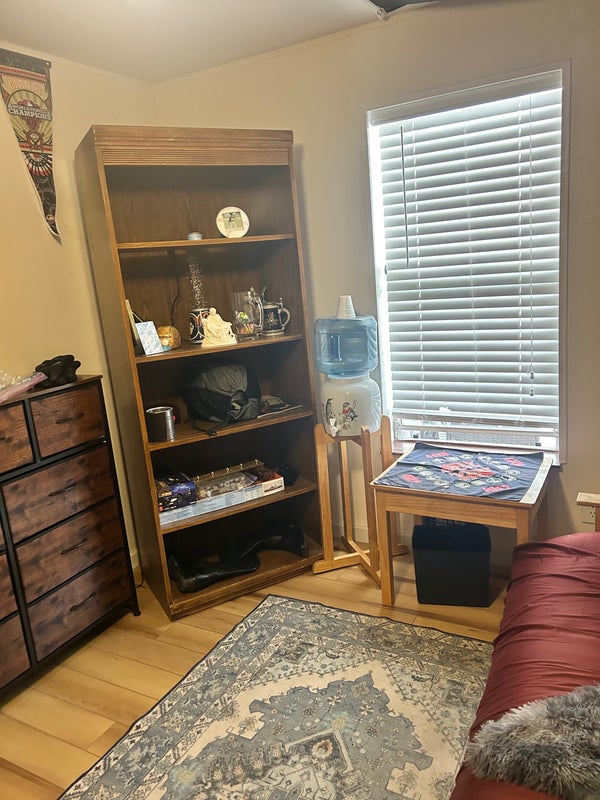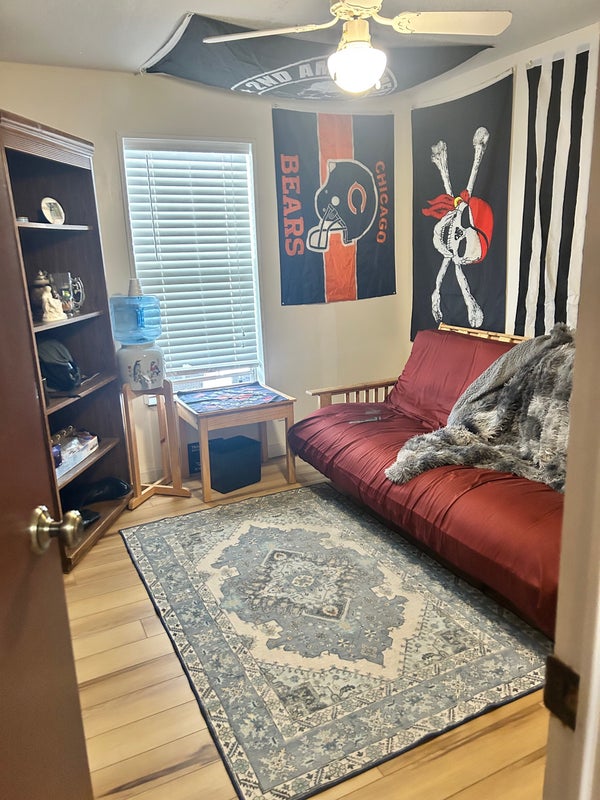 Furnished, room, ceiling fan, double futon , bookcase dressers, good furniture, , large closet, luxury vinyl flooring, throw rugs, and utilities included . Laundry room available, house privileges, if you make a mess, cleaning it up is required. 2100 square-foot house four bedrooms two full baths on .5 acre. Feels rural yet close to shopping, banks, Intel, Cottonwood, Mall, Paseo, Del Norte, restaurants, Walmart. Beautiful sunrises and sunsets with the Sandia Mountain View from my front porch. Outdoor smoking permitted. Cannabis, friendly, limited alcohol use on site.. MILITARY & INTEL EMPLOYEES WELCOMED! Located less than 15 minutes from Intel! Prefer no alcohol use at home, outdoor cannabis and cigarette friendly, although nobody in the house is a cigarette smoker but not minded outside nice smoking area set up