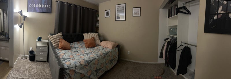 The home is in a gated community with access to a pool. The room is furnished and includes use of a washer and dryer. There is also a small private patio (smoking outside totally fine) out front and parking available outside the garage.