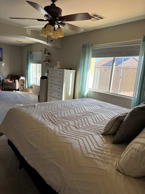 Spacious primary bedroom for rent in gated community. Originally two rooms converted into one—extra large with private bathroom and walk-in closet. Includes access to pool and gym.