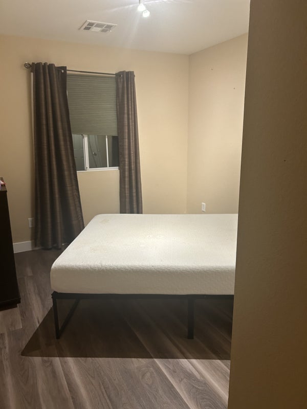 Medium Bedroom, furnished with a queen bed Parking out front located near everything. Some Utilities included Professionals with a clean way of living. Must be ok with cats