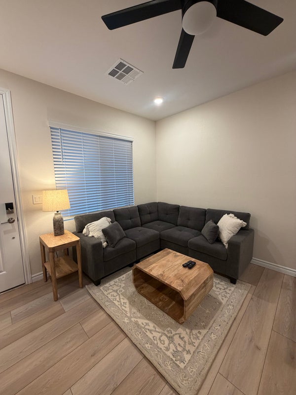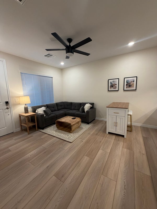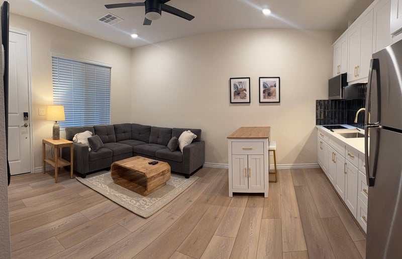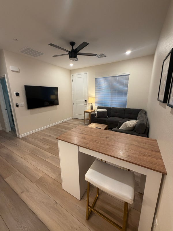 Fantastic value for this bedroom fully furnished, efficiency apartment located near desirable Inspirada. Kitchenette features burner induction cooktop, microwave that is also a convection oven & air fryer, fridge and pantry. Spacious bedroom has walkin closet with stacking washerdryer. Park right in the driveway and enter through your own private entrance with cozy front porch. Furnishings include bedroom furniture, couch, coffee & end tables, dining set, and TV. All utilities included in rent, electricity, gas, water, sewer, trash, internet. This unit is attached to the owner's residence but walls have been soundproofed & the access eliminated. Oneperson occupancy limit. No pets, no exceptions.