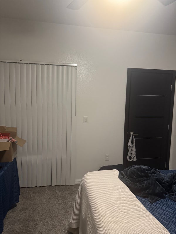 Large master bedroom with private bathroom and walk-in closet available on May 4, 2026. Unfurnished room shared living space three bathrooms in the apartment, two private and one shared bathroom.
